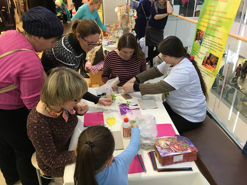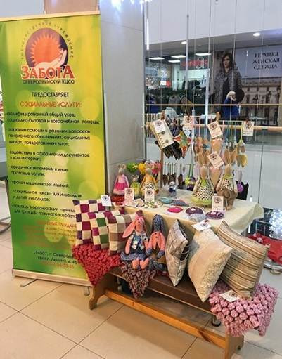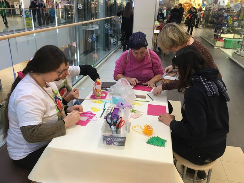 Для гостей праздника специалисты нашего учреждения организовали и провели творческий мастер-класс по изготовлению новогодней игрушки "Сердечко". Также по традиции приняли участие в ярмарке изделий, сделанных своими руками, руками особенных людей. Во такие работы представили специалисты и получатели социальных услуг нашего отделения дневного пребывания граждан пожилого возраста и инвалидов: