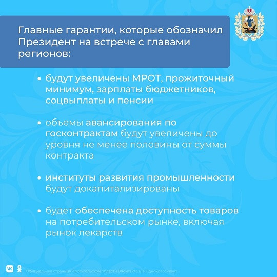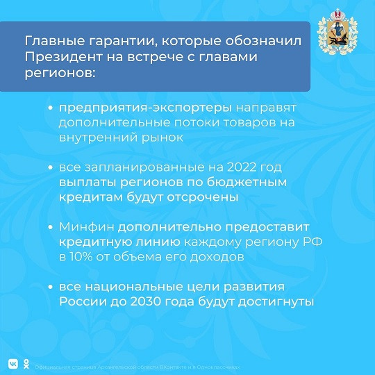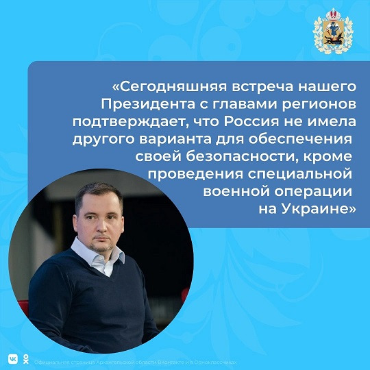 16 марта состоялась встреча Президента РФ с главами регионов. Губернатор Архангельской области поделился важными итогами этой встречи в своем telegram-канале.