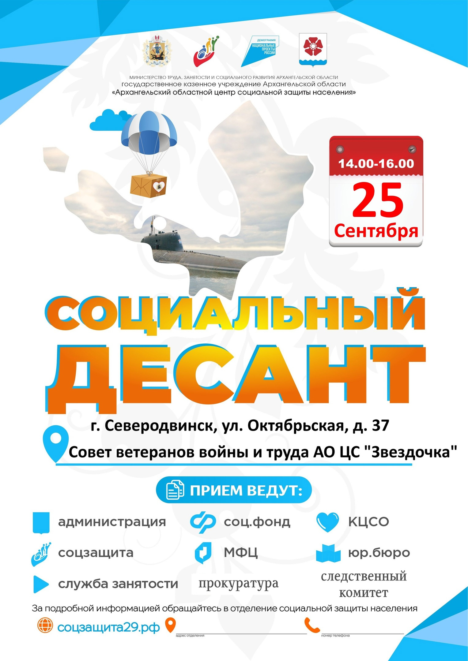 25 сентября в Северодвинске в очередной раз состоится выезд социального десанта, чтобы рассказать жителям Северодвинска о положенных им мерах социальной поддержки: