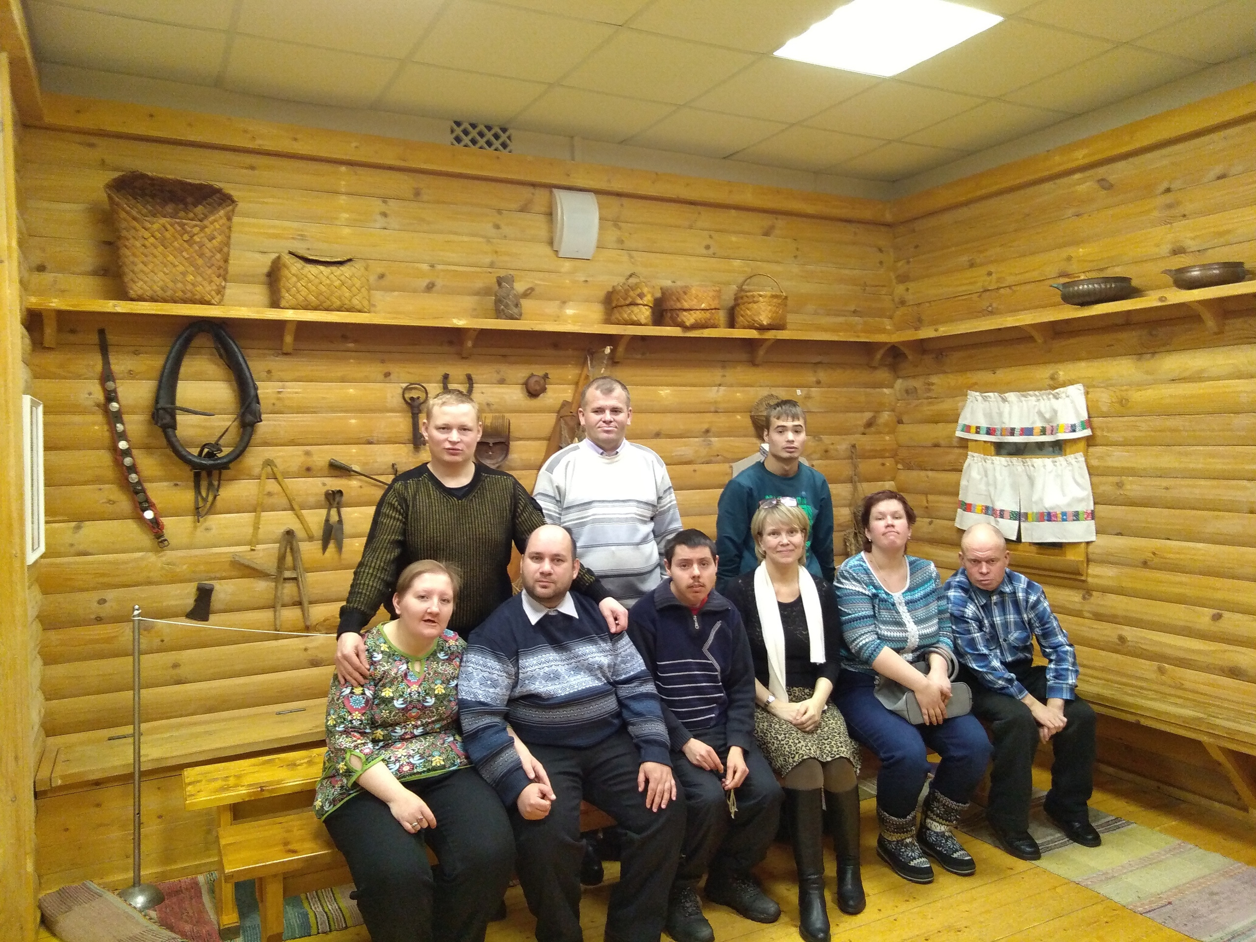 Экскурсия в музее. Получатели социальных услуг отделения дневного пребывания побывали в старинном русском доме. Узнали о принципах построения русской избы, расположения и содержания её мужской и женской части. Участвовали в конкурсе "старинные инструменты", познакомились с их названиями и применением в быту. А потом была самая интересная часть - старинные гадания! Гадали с помощью веретена, платка, полена, кушака и т.д.,узнали о своём будущем. Девочки захотели покачать колыбельку. А потом было угощение конфетами и фотографирование.